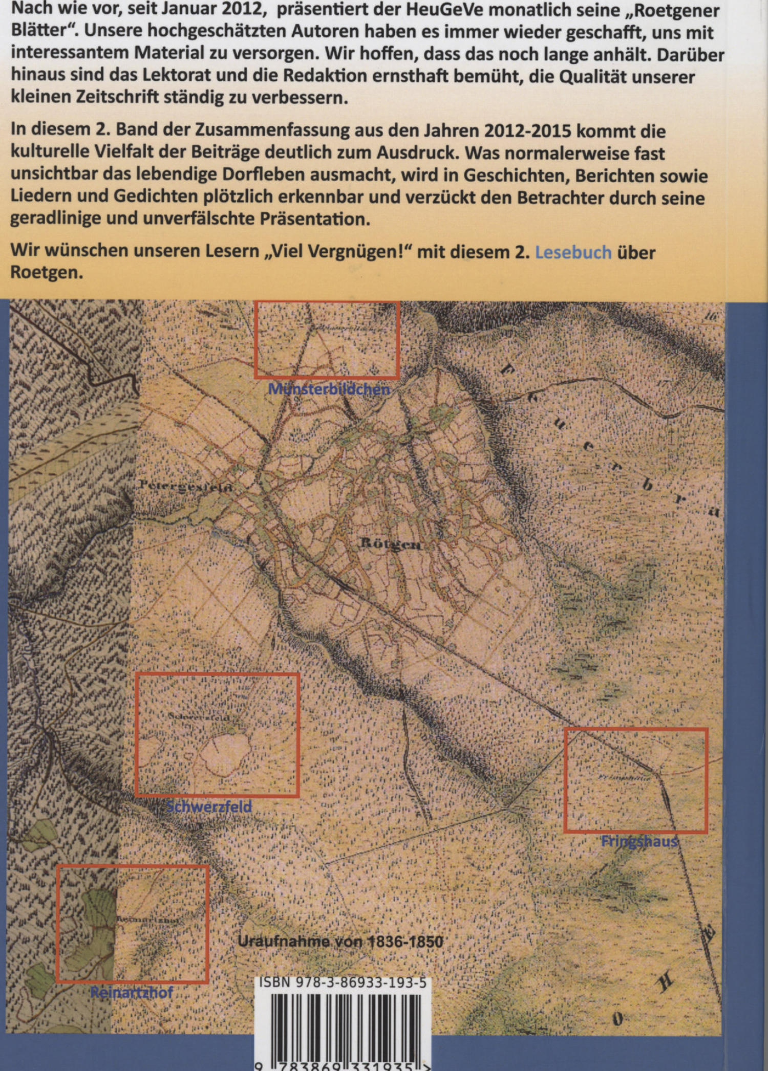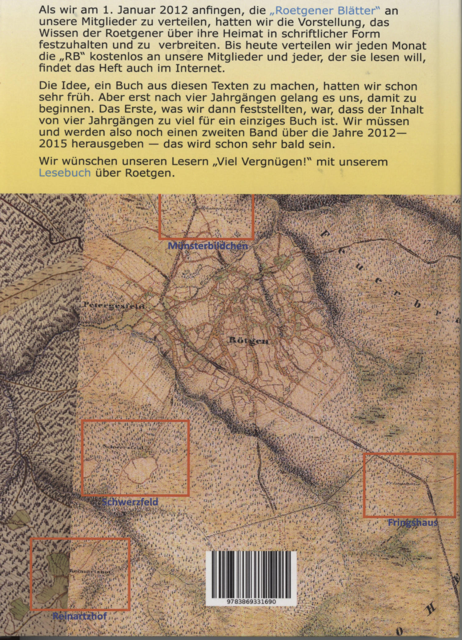 Unsere RB-Buch-Reihe: RB steht für „Roetgener Blätter“Seit2012produzierteinRedaktionsteambishermonatlichunsere„RB“.Indiesemmeist28-seitigenHeft veröffentlichenwirInformationenüberunsereHeimat,undderenGeschichtesowieHeuGeVe-Vereinsnachrichten.2016fingenwiran,denwesentlichenInhaltderHefteebenfallsinBuchform herauszugeben.DabeiwurdenvieleAufsätzenocheinmalüberarbeitetundmitZusatzinformationenergänzt. UnterdemGesamttitel„RoetgenerGeschichteundGeschichten“habenwirbis2022breits6Bände produzierenlassen,diewirnormalerweiseinRoetgenverkaufen;einigeBüchergehenaberauchandie Roetgener Auswanderer in alle Welt.