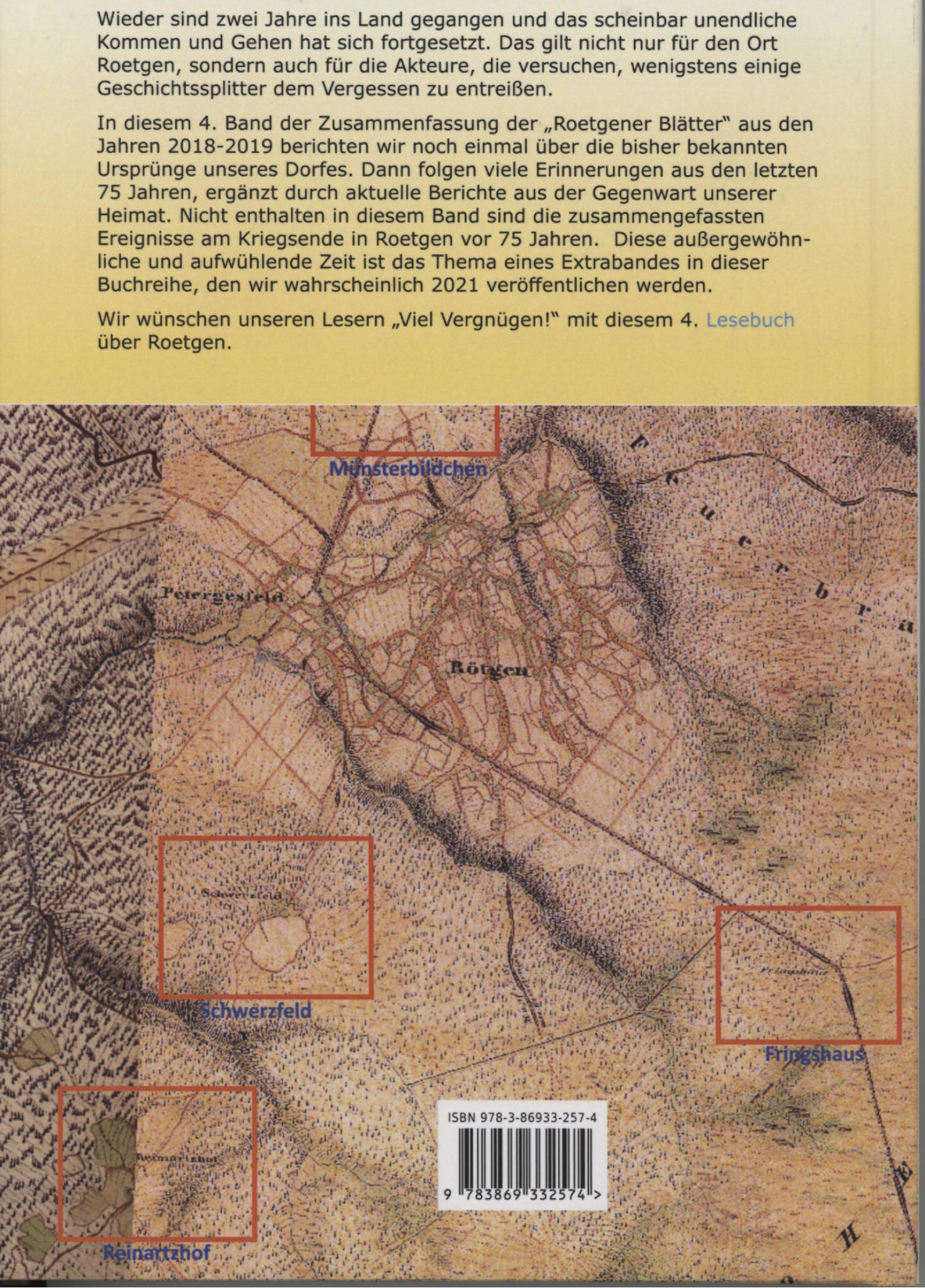 Unsere RB-Buch-Reihe: RB steht für „Roetgener Blätter“Seit2012produzierteinRedaktionsteambishermonatlichunsere„RB“.Indiesemmeist28-seitigenHeft veröffentlichenwirInformationenüberunsereHeimat,undderenGeschichtesowieHeuGeVe-Vereinsnachrichten.2016fingenwiran,denwesentlichenInhaltderHefteebenfallsinBuchform herauszugeben.DabeiwurdenvieleAufsätzenocheinmalüberarbeitetundmitZusatzinformationenergänzt. UnterdemGesamttitel„RoetgenerGeschichteundGeschichten“habenwirbis2022breits6Bände produzierenlassen,diewirnormalerweiseinRoetgenverkaufen;einigeBüchergehenaberauchandie Roetgener Auswanderer in alle Welt.