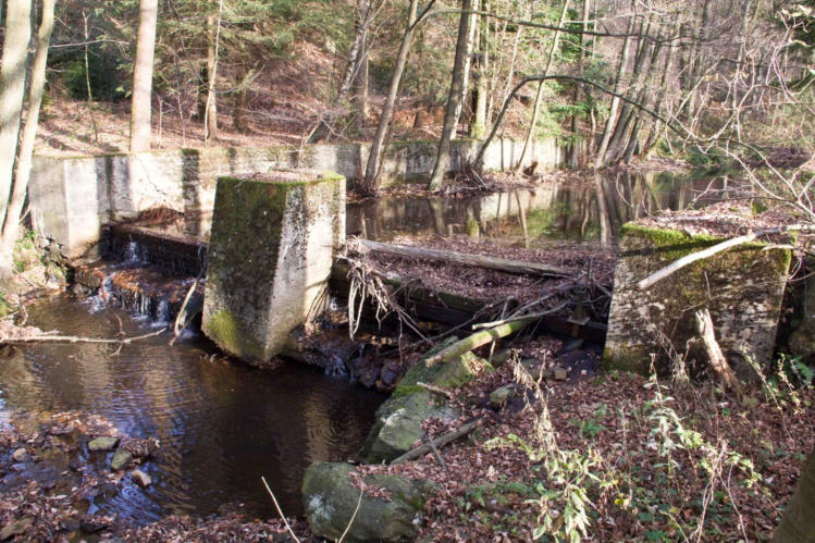 So nennt man das Gelände westlich der Weser an der Schwerzfelderstrasse mit der Flurbezeichnung: "Mückenheide". Woher die Bezeichnung Schlunk stammt, ist nicht bekannt.Gerodet wurde das Gelände von der Familie Wilms in der ersten Hälfte des vorigen Jahrhunderts.Es gab hier auch einen Steinbruch (zu dem wir sicher noch etwas nachtragen können).Wenn wir der Weser flussauf folgen, stoßen wir bald auf die Überreste eines Schwimmbades.Die Mauern dieses Naturschwimmbades sind heute noch vollständig erhalten, man könnte sicherlich dieses Schwimmbad wieder aktivieren. Wobei aber schon berechtigte Zweifel bestehen, ob heutige Generationen in einem derart kalten Wasser noch schwimmen wollten - von Haftungsfragen einmal ganz abgesehen.Erbaut wurde das Schwimmbad vom Arbeitsdienst vor dem 2. Weltkrieg.(Freiwilliger AD oder RAD? Muß noch geklärt werden).Zur Aufstauung der Weser wurde in die Nuten der Mauern Holzbalken eingelassen. Einige dieser Balken sind heute noch zu sehen.Laut Bericht von Georg Johnen (Zeitzeuge) hatte das Schwimmbad einen Tiefe von ca. 1,50 Meter, bei einer Länge von geschätzt 15 Metern.Es war also ein richtiges Schwimmbad. (frasch)