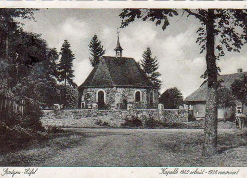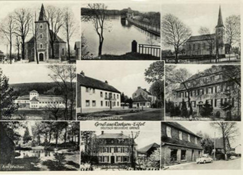 Woher stammen diese Bilder?Die meisten Bilder wurden von Olga Löhrer an Dieter Fischer ausgeliehen. Herbert Simons hat sie dann digitalisiert und eine CD davon gebrannt. Gesammelt hat sie wohl ursprünglich Raimund Löhrer. Etwa 5% der Bilder kommen aus der Sammlung von Walter Wilden. Der Verein besitzt z.Z. ca. 250 alte Postkarten und Bilder von Roetgen und Umgebung. Es wäre natürlich schön, wenn wir diesen Zustand verbessern könnten! Wenn Sie also alte Bilder haben sollten, denken Sie an uns; wir wären wirklich sehr dankbar. (rowi)
